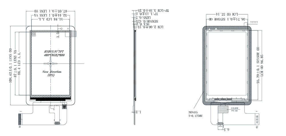| 외곽선 크기 | 67.05(H)*108.62(V)*3.39(T) | 터치 인터페이스 | IIC |