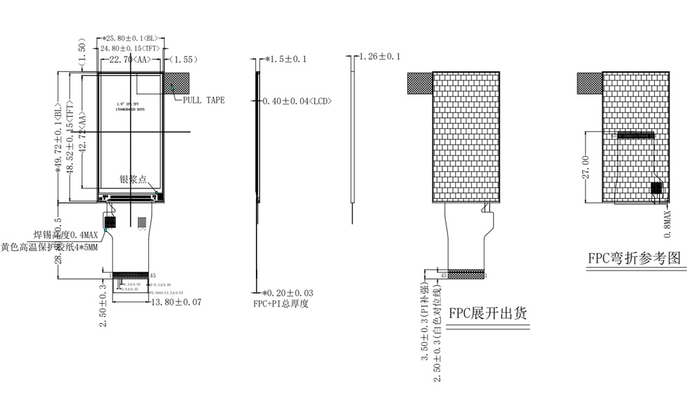 1.9인치 바 스크린은 170*320의 해상도를 갖고 있어 고화질과 섬세한 디스플레이, IPS 전체 시야각을 제공하며 SPI/MCU/RGB 인터페이스를 지원합니다. 성숙한 ST7789 드라이버 IC를 사용하여 신뢰성과 안정성을 보장합니다. 1.9인치 막대 모양은 많은 장치의 "정보 디스플레이 스트립" 요구 사항에 완벽하게 맞으며, 주 시각적 공간과 작동 공간을 차지하지 않고도 좁은 베젤, 측면, 손목 밴드 또는 손잡이에 원활하게 통합됩니다. 작은 크기와 매우 낮은 전력 소비로 메인 시스템에 최소한의 부담을 주며, 핵심 정보를 항상 표시할 수 있어 배터리 친화적인 솔루션입니다.
