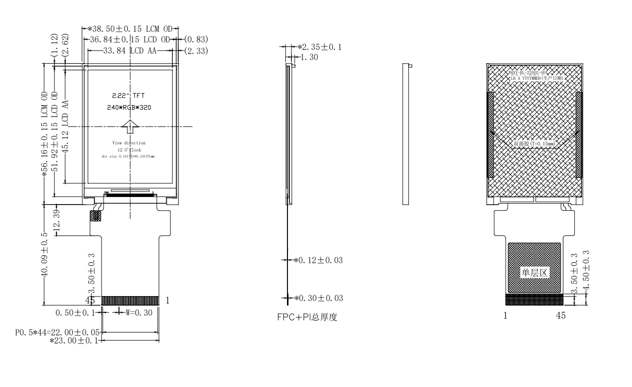 Shenzhen Hongjia Technology는 오랫동안 2.2인치 LCD 화면을 공급해 왔으며 지속적인 공급을 보장하기 위해 안전한 재고를 유지하고 있습니다. 이 2.2인치 LCD 디스플레이는 240*320의 해상도를 가지며 성숙한 ST7789 IC를 사용하고 높은 신뢰성을 제공하며 3/4선 SPI 인터페이스, 8비트/16비트 MCU 인터페이스 및 16/18/24비트 RGB 인터페이스를 포함한 SPI/MCU/RGB 인터페이스를 지원합니다. 2.2인치 TFT 화면은 2.4인치와 2.8인치 LCD 화면 사이에 배치되어 작은 크기를 원하는 고객에게 적합하며 마이크로컨트롤러도 지원합니다. 많은 고객들의 호평을 받아왔습니다. 또한 유연한 케이블 인터페이스, 백라이트 밝기, 터치 스크린을 포함한 맞춤형 서비스도 제공합니다.