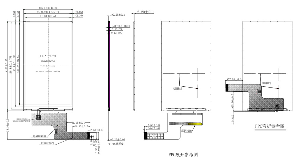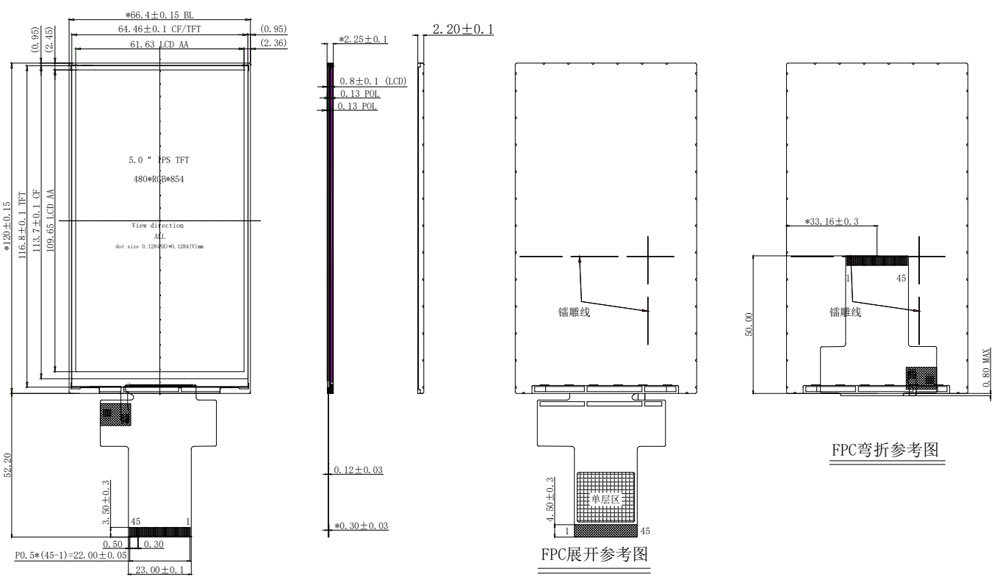하드웨어를 자주 설계하는 엔지니어에게는 800*480 해상도와 RGB 인터페이스를 갖춘 5인치 가로 화면이 매우 일반적입니다. 오늘 Shenzhen Hongjia Technology의 엔지니어 관리자인 Mr. Huang이 다음을 소개할 예정입니다.5인치 세로형 화면480*854 해상도로. 이 화면은 좁은 베젤과 16:9 화면비를 갖추고 있어 좁은 베젤이 필요한 기계에 적합합니다. 베젤이 너무 넓게 나타나는 것을 방지하여 클라이언트 컴퓨터의 미적 아름다움을 향상시킵니다. RGB 및 MIPI 인터페이스를 지원하는 이 제품은 성숙한 ILI9806E IC를 활용하여 뛰어난 정전기 방지 및 간섭 방지 성능을 제공하므로 산업 장비, 군사 장비, 드론과 같은 까다로운 애플리케이션에 사용하기에 적합합니다. 구조도는 아래와 같습니다. 사용자 정의도 지원됩니다.